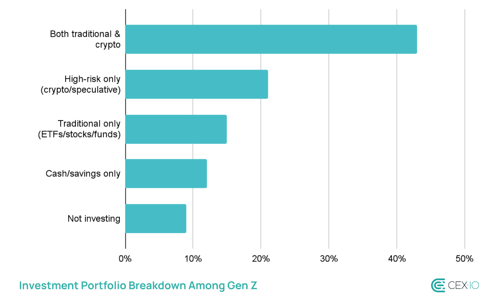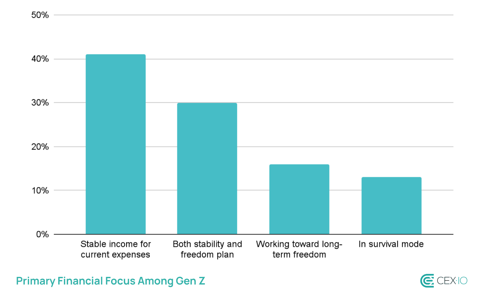 In that sense, experimenting with crypto alongside traditional investments (43% do both) starts looking reasonable. Gen Z watched millennials follow traditional advice, get college degrees, invest conservatively, and still struggle to buy homes or clear debt. That is why a safe path may not look as appealing anymore, so taking higher risks may be perceived as a more justified approach just to keep up or achieve financial independence.