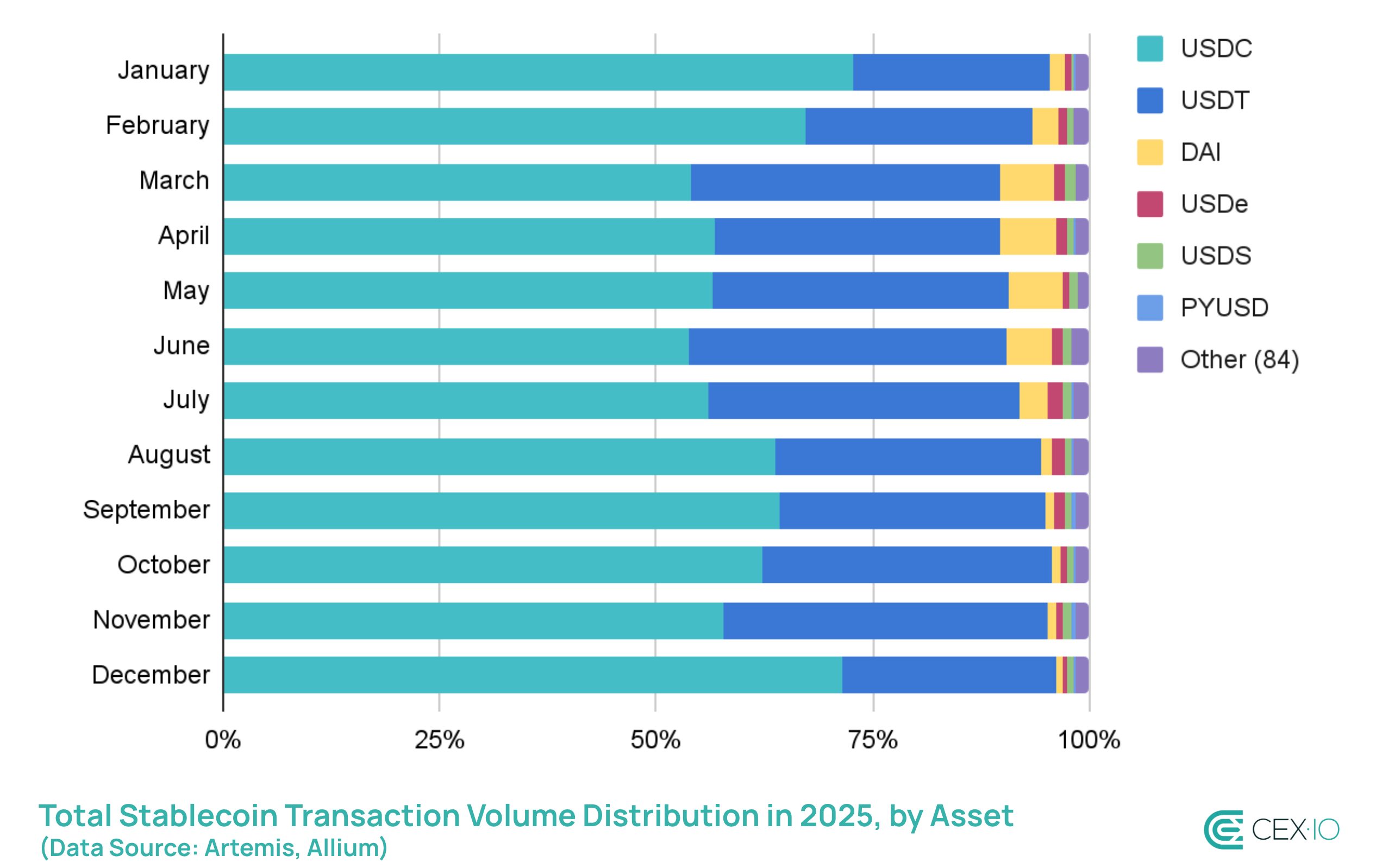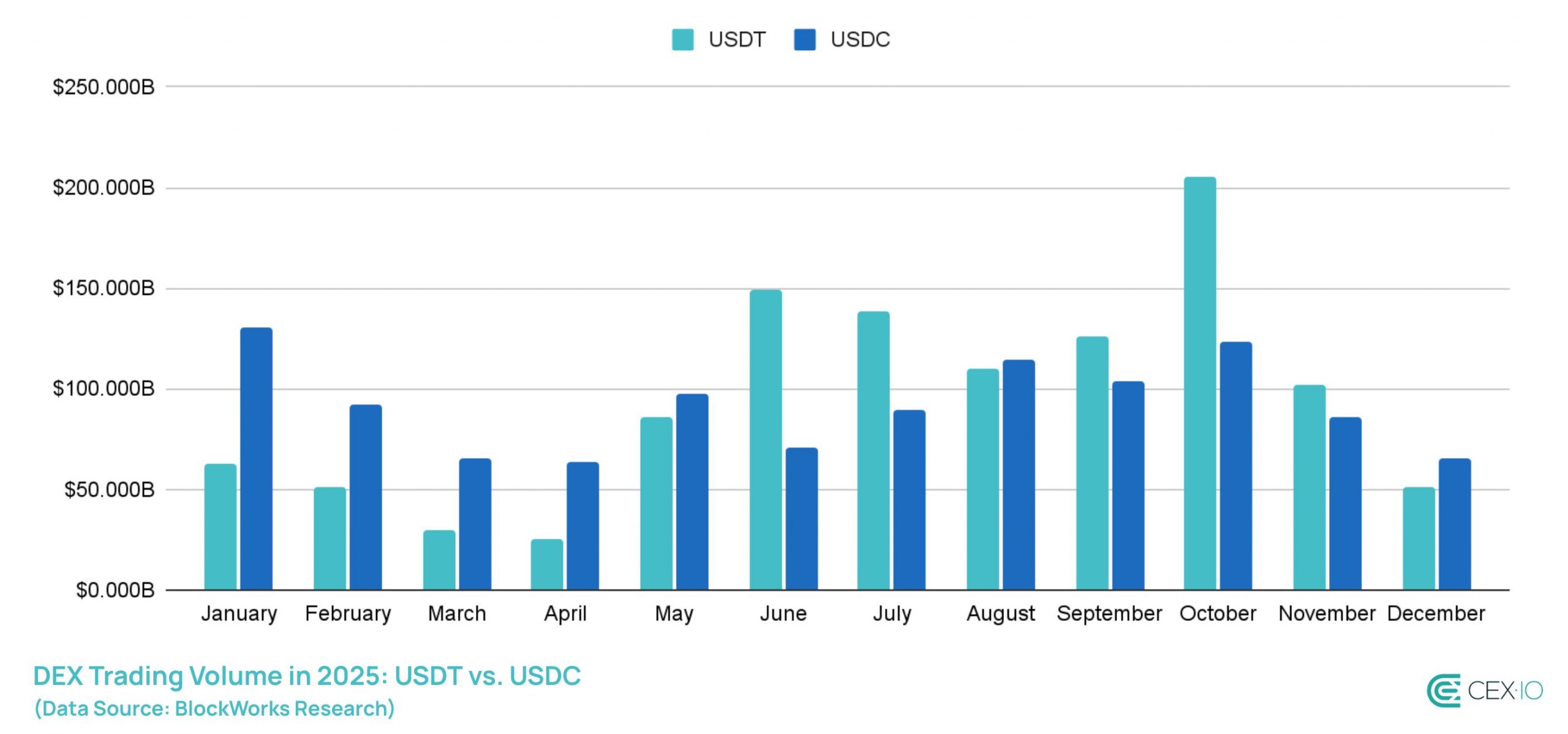 - In 2025, USDT’s DEX trading volume exceeded USDC’s for the first time since 2021.