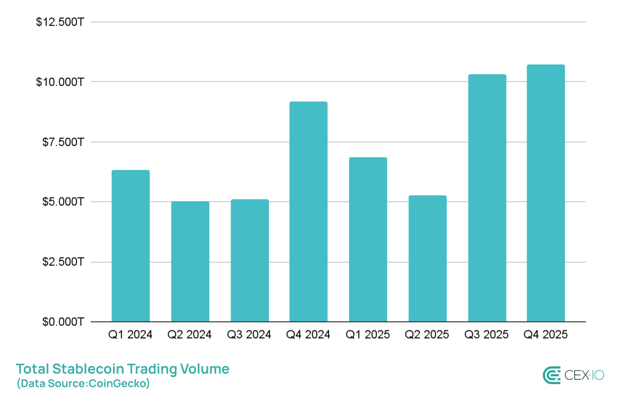 Throughout 2025, stablecoins have been confidently surpassing traditional payment providers in transaction volume, with Q4 becoming the most active quarter. This quarter alone exceeded the entire annual stablecoin volume of 2021.