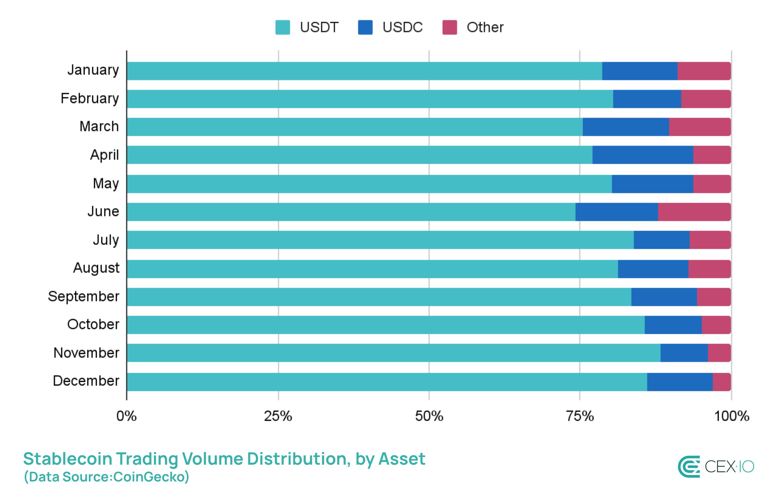This USDT concentration intensified throughout the year, moving from 78.5% in January to 86.0% in December. This rise in domination occurred, despite USDT delisting for EU customers on multiple CEXs, as markets became more concentrated during US trading hours.